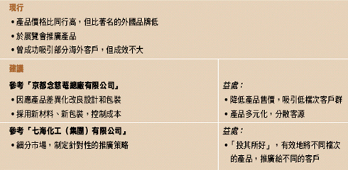 過往的經驗表明,公司的油掃刷在外國的市場上也有一定的競爭力,特別是價格上具有優勢,並曾成功吸引過海外買家。所以公司在開拓中國市場同時,亦不妨透過參加一些海外的展覽會瞭解外國市場的特徵,為進一步拓展海外市場作好準備。